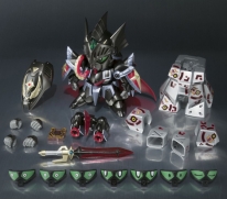 ガラリと印象を変えるシャドウカラーは、元祖SDガンダムを参考に黒・銀・赤で構成。設定通り鏡写しに左右反転しており、左肩に付いていた鎧飾りは新規造形で右肩へ装着され、装備類もシールドの刻印や竪琴の懸架位置なども反転している。