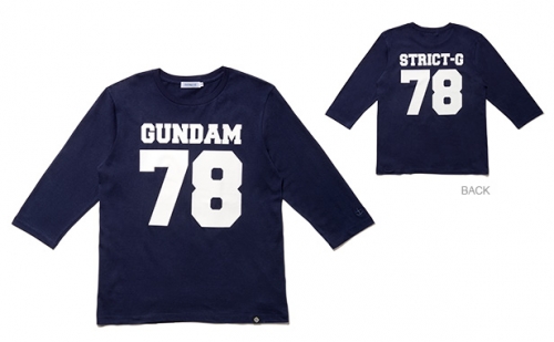 「機動戦士ガンダム」の世界観を取り入れたメンズアパレルブランド「STRICT-G」では、2013年秋冬コレクションの新アイテムとなる「七分袖フットボールTシャツ」と「フロッキープリント トレーナー」が好評発売中だ。