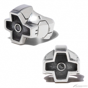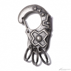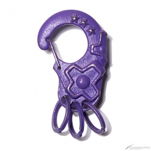 ドムの顔を重量感たっぷりにデザインした、「シルバー」とドムカラーの「パープル」の2色で展開。ビンテージ加工を施したパープルのカラーコーティングは、使用する程に経年変化で自分だけの味を楽しむことができる。