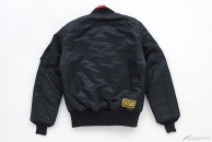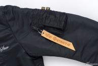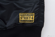 「ALPHA INDUSTRIES」×「STRICT-G」スペシャルコラボ第2弾は、「MS-09 ドム」をモチーフにした黒い三連星モデル。胸には三つの星を充填物によって立体的に表現、さらに「BLACK TRI STAR」の刺繍は主張しすぎない同系色とシブいデザインになっている。