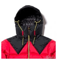 レッドの「シャアモデル」は、シャア・アズナブルの制服をモチーフに、ファスナー・ストレッチコードにもイメージカラーを配色。左袖口にはジオン公国軍マークをワンポイントが刺繍されている。