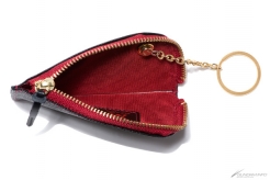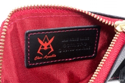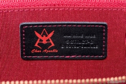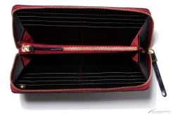 どちらも『赤い彗星』の異名を持つ「シャア・アズナブル」をイメージしたデザインとなっており、黒×赤の配色にゴールドのファスナー、内装にはシャアのパーソナルマーク入りピスネームを纏う。カウレザー(牛革)にシボの型押しを施した張りのある質感は、繊細な高級感を演出し、且つ傷が目立ちにくいのが特徴。