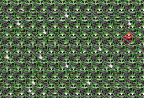 見渡す限り「ジム」、または「ザク」だらけの1,000マイクロピースジグソーパズルは、ほんのわずかな手がかりしかない超難易度のパズルとなっている。