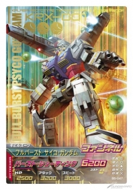 Build MS Set 5's Perfect Rares are "Star Build Strike Gundam" and "Meijin Kawaguchi" from Gundam Build Fighters, "Alpha Azieru" and "Amuro Ray" from Mobile Suit Gundam: Char's Counterattack, and "Hi-ν Gundam" from Mobile Suit Gundam Char's Counterattack: Beltorchika's Children. There's also a TryAge original to round out the set of six: the "Full Burst Psyco Gundam".