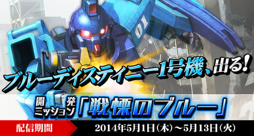 5月15日(木)から5月28日(水)までの1週間、全国にて「ブルーディスティニー1号機」が撃破された数に応じたMS経験値ボーナスが配信される。