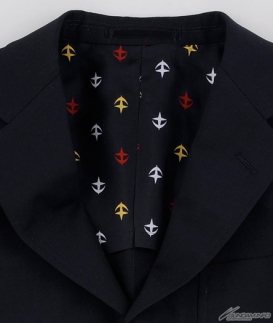 ガンダムの世界観を取り入れたメンズアパレルショップ「STRICT-G」では、地球連邦軍のモチーフをところどころに散りばめた「E.F.S.F. ネイビーブレザー」が発売中だ。