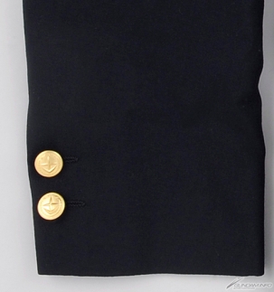 ▲裏地の総柄は連邦軍マークをカラフルに配置。同じくマーク入りの金ボタンは中央に3個と袖に2個ずつ付く。