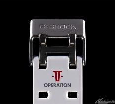 光沢のあるホワイトのボディには、ブルー・レッド・イエローをアクセントとして取り入れ、バンド部分にはビジネス・カジュアルどちらのシーンにも馴染む配色のマーキングをデザイン。さらに、LEDライトを点灯させるとアムロのパーソナルマークが浮かび上がるほか、裏蓋にはコラボレーションロゴの刻印が入る。