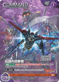 そして、8月16日(土)より開催される「サンライズフェスティバル2014湧昇」では、ガンダム作品を上映する8月23日(土)から9月6日(土)の「ガンダムウィーク」期間中、同じく入場者を対象にプロモーションカード「伝説の目撃者」が配布される。