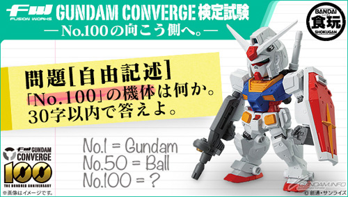 2014年12月発売予定のシリーズ17弾で、ついにNo.100となる機体が登場することを記念して実施される今回の検定試験では、「FW GUNDAM CONVERGE」およびガンダムシリーズに関連する事項から、4択式の模擬試験と記述式の本試験が出題される。