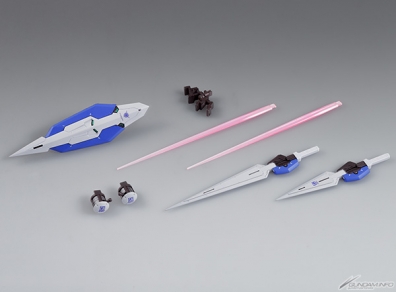 通常版は受注販売となるが、海老川氏描き起こしイラストパッケージ仕様に加えて、「GNロングブレイド」、「GNショートブレイド」、「GNビームサーベル」、そして通常版には無い「GNシールド」が追加で付属するデラックス版「ウェポンプラスパック」は先着販売となる。先着販売は準備数に達し次第終了となるので、早めに予約するよう注意しておこう。