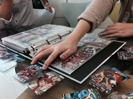 また、シリーズコレクションという商品の性格を生かして、弾をまたいでカードを集めていく一味違うコレクション遊びもできるんですよ。それは絵本を編集していく様なカタチで、ユーザー自身のセンスでカードナンバーではなく、カードの絵を繋げていくとショートストーリーを楽しめるといったものです。
