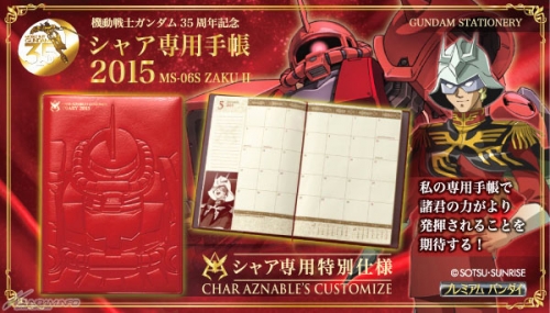 バンダイ公式ショッピングサイト・プレミアムバンダイでは、本日9月11日(木)より「シャア専用手帳2015」と「ガンダムシーンカレンダー2015」の予約受付が開始された。