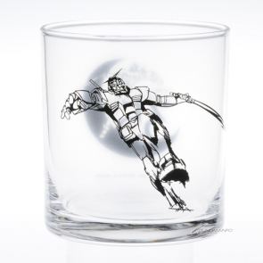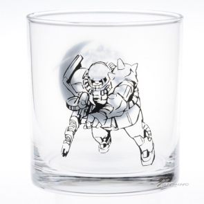 「ガンダム」と「ザク」の顔をモチーフにしたアイコン柄や、名シーンをシックにデザインしたグラス。全高約8cm。