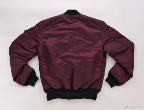 ガンダムの世界観を取り入れたメンズアパレルショップ「STRICT-G」では、ALPHAを代表するフライトジャケット「MA-1」とコラボレーションした「STRICT-G×ALPHA コラボMA-1シャアモデル(MAROON)」が、明日10月11日(土)に発売される。