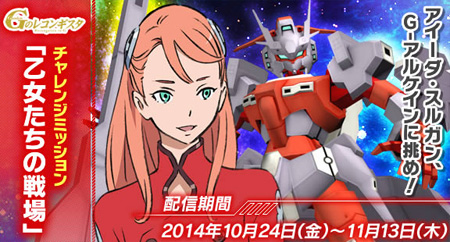 チャレンジミッション「乙女たちの戦場」では、好評放送中の『ガンダム Gのレコンギスタ』より、アイーダ・スルガンの搭乗する謎の機体「G-アルケイン」をはじめとした、女性パイロットのみで構成された部隊へと挑むこととなる。