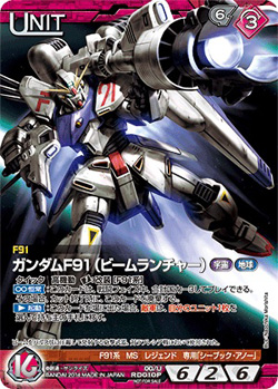 「ガンダムF91スリーブ」(右、「第7弾ブースターパック ブースタードラフト大会」のみ)