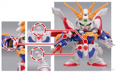前シリーズからのリニューアルポイントとして、30年前の「ガシャポン戦士」シリーズと比較してリアルな等身に格段に進化。全高約45mmとサイズも大きくなり、より見ごたえのある等身に一新されている。