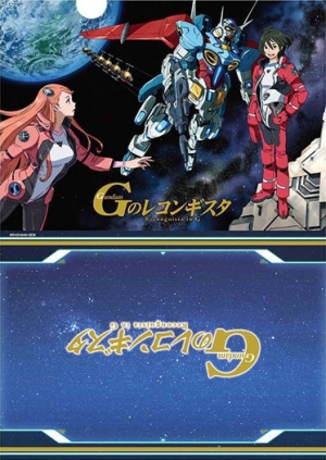 Gundam Reconguista in G's design features its key visual and logo, while Gundam Build Fighters Try's mixes its key visual with scenes from the show.