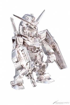 The finely-detailed, 55cm-high Gundam Converge series is realized in pure gold or silver. The lovable, detailed SD suits gleam in gold and silver, appealing to both Gundam fans and connoisseurs of precious metals.