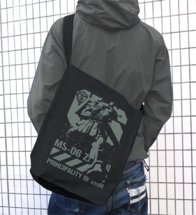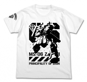 「サンダーボルト版ザクTシャツ」と「サンダーボルト版ザクショルダートート」は、『機動戦士ガンダム サンダーボルト』に登場する「量産型ザク」をプリントしたアイテム。サンダーボルト版独特のフォルムのザクの背景には、形式番号とジオン公国の英文がプリントされている。