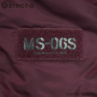 シャアモデルは、絶妙なカラーリングである「マルーン」はそのままにワッペンデザインを一新。衿、裾、袖口のリブカラーはボディと同色に、ファスナーはゴールドにペイントされているほか、左胸のワッペンを剥がすと「MS-06S」の機体番号が現れるなど、ファンには堪らない逸品となっている。