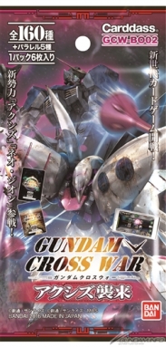 リアルでもアプリでも全く同じ遊びができるカードゲーム「ガンダムクロスウォー」のブースターパック「アクシズ襲来」は、本日1月29日(金)に全国のコンビニエンスストア、玩具店、百貨店・量販店の玩具売場、カード専門店、カードダス自販機、インターネット通販で発売される。価格は、カード6枚入りブースターパックが300円(税抜)、カード4枚入りの自販機ブースターが200円(税込)。