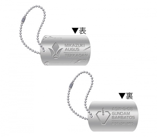 ทาง MOVIC ผู้ผลิตและจัดจำหน่ายสินค้าตัวละครจากเรื่องดังต่างๆ เตรียมจำหน่ายพวงกุญแจด็อกแท็ก "Mobile Suit Gundam IRON-BLOODED ORPHANS" ช่วงวันที่ 14 เมษายน(พฤหัส)ที่จะถึงนี้ โดยเปิดสั่งจองทางเวบหลักแล้ว สนนราคาที่ 650เยน(ไม่รวมภาษี)