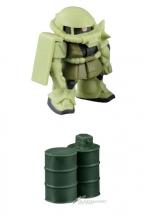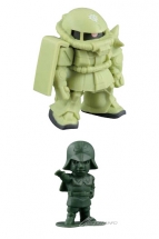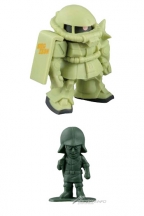 เป็นฟิกเกอร์ ZAKU แบบ SD กับมินิฟิกเกอร์ของเหล่าทหารและข้าวของต่างๆ ถ้ารวบรวมได้หลายๆ แบบสามารถนำมาวางจัดฉากสนามรบบนโต๊ะได้ด้วยนะ
