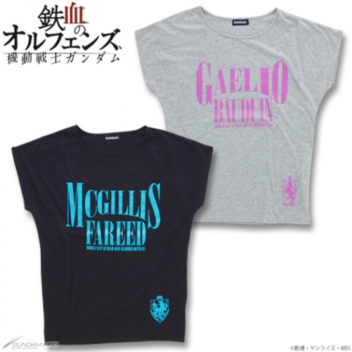 "เสื้อไหมพรมเครื่องแบบทหารสหพันธ์โลก" คือเสื้อถักคุณภาพสูงที่ใช้เทคนิค intarsia จัดทำลวดลายจำลองเป็นชุดเครื่องแบบทหารของกองทัพสหพันธ์โลก ส่วนสินค้า "โมบิลสูทกันดั้ม ไอร่อนบลัดออร์แฟน" อีก 3 รายการ "ชุดช่างกลุ่มเท็กกะดัน" ที่เป็นอิมเมจของกลุ่มเท็กกะดัน จะพิมพ์สัญลักษณ์กลุ่มเท็กกะดันไว้ที่กลางหลังพร้อมปักสัญลักษณ์กลุ่มไว้ที่แขนขวา ส่วนเสื้อดอลแมนสลีฟทีเชิ้ตสำหรับสุภาพสตรีมีแม็กกิลลิสโมเดลและกาเอลิโอโมเดลรวม 2 แบบ ส่วน "ซิปปาร์ก้ากาลาร์ฮอร์น" จัดพิมพ์ลายฟอลย์สีเงินรูปเครื่องหมายกาลาร์ฮอร์นอย่างสวยงาม