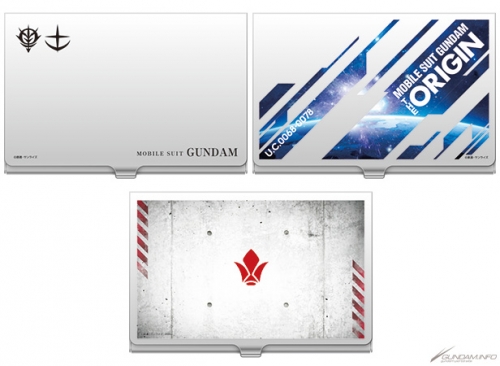 ▲ Card Case ที่แถมในชุดบัตร(จากซ้าย TYPE-A ภาพต้นฉบับของอาจารย์ยาสุฮิโกะ โยชิคาซุ , TYPE-B THE ORIGIN ver.、TYPE-C Iron-blooded Orphans ver.)เคสมีขนาดเท่ากับ กว้าง90×ยาว60×หนา8.5 มม.(โดยประมาณ)