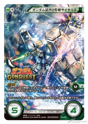 GCWのプロモーションカードに、「ガンダムコンクエスト」のキービジュアルが「ガンダム試作2号機サイサリス」と「デスティニーガンダム」としてリアルカード化。2枚のカードは好評発売中のブースター「共闘戦線」にあわせて繋がり画となっている。