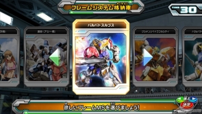 ▲ビルドモビルスーツカードを使って「マルチフレームシステム」を選択しよう。フレームMS専用の格納庫に行けるぞ。