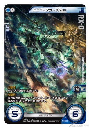 ▲「PR-U013 ユニコーンガンダム(覚醒)」、「PR-U021 スクランブルガンダム」[上]、「PR-U017 ガンダム試作2号機サイサリス」、「PR-U018 デスティニーガンダム」[下]