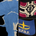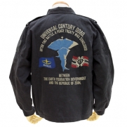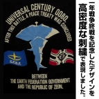 ツアージャケットとは、兵士たちが所属していた部隊や駐屯地などを記念に刺繍し、お土産として持ち帰ったと言われるアパレルアイテム。本アイテムは、「一年戦争終戦」をテーマにデザインされ、一年戦争最終戦闘の舞台となった「ア・バオア・クー」を中心に、連邦とジオンの軍旗を刺繍で表現。英文は、『機動戦士ガンダム』最終回の「宇宙世紀0080。この戦いの後、地球連邦政府とジオン共和国との間に終戦協定が結ばれた…」というメッセージが刻まれている。