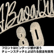 刺繍は、糸の振り方向でア・バオア・クーの陰影や、風になびく軍旗の雰囲気を再現。フロントにはビンテージ感漂う“チェーンステッチ”と呼ばれる技法を採用し、味のある仕上がりとなっており、両袖と胸についたワッペンベース(マジックテープメス)には、種類豊富なコスパの「脱着式ワッペンシリーズ」を自由に付けることができる。