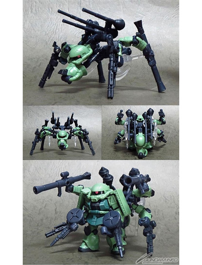 มันถูกสร้างขึ้นมาเพื่อเป็นหน่วยสนับสนุนให้กับ Zaku ส่วนหัวเป็นแบบเดียวกับ Zaku ส่วนขาจะเป็นการผสมกันของแมลงและสุนัข สามารถเชื่อมต่อกับ Zaku ได้ (ความเห็นของเจ้าของผลงาน)