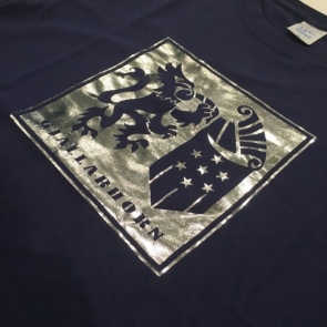 “Iron Blooded Orphans T-Shirt (Gjallarhorn)” เป็นเสื้อยืดพิมพ์ลายสัญลักษณ์ Gjallarhorn สีเงิน