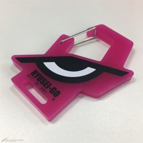 [คาราบิเนอร์ (ห่วงนิรภัย) อคริลิก Ryusei-Go] ใช้สีพื้นเป็นสีชมพูและออกแบบโดยใช้รูปทรงของโลโก้ [ดวงตา] เป็นแรงบันดาลใจและเน้นให้เป็นจุดเด่นของผลิตภัณฑ์ แถมยังใช้ประดับกระเป๋าได้อีกด้วย