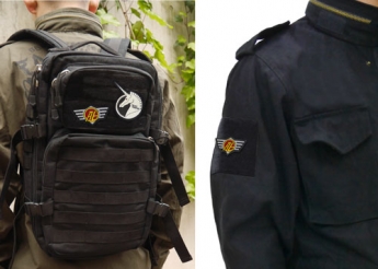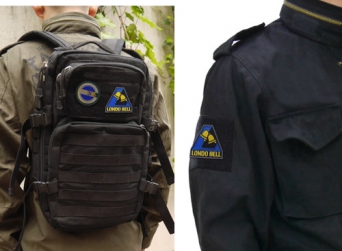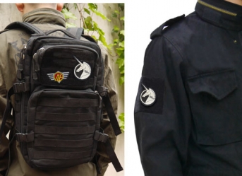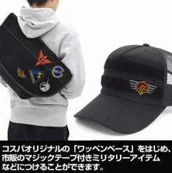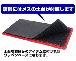 ด้านหลังของแบดจ์เป็นวัสดุตีนตุ๊กแก (เทปเวลโคร) จาก Cospa สามารถติดได้กับตีนตุ๊กแกทั่วไปได้ทันที
