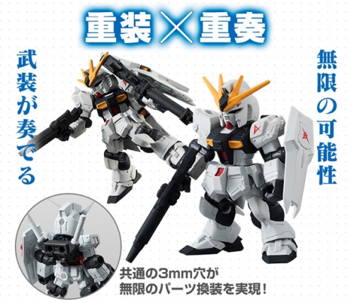 สินค้าฮอบบี้ของกันดั้มในตีม “เครื่องอาวุธ” ที่มีแมคคานิคที่สามารถใส่ได้ในรูขนาด 3 มม. และใช้พาร์ทร่วมกันได้ทุกตัว ทำให้สามารถสร้างเอกลักษณ์เฉพาะตัวให้กับโมบิลสูทของแต่ละคนได้