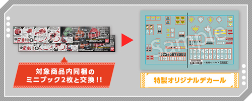*มินิบุ๊คที่มากับสินค้าร่วมรายการ สามารถใช้ร่วมกันได้ กล่าวคือ เพียงสะสมครบ 2 ชิ้น จาก Mobile Suit Ensemble หรือ EXCEED Model Zaku Head มารวมกัน หรืออย่างใดอย่างหนึ่ง ก็สามารถแลก ดีคอลพิเศษได้เช่นกัน