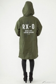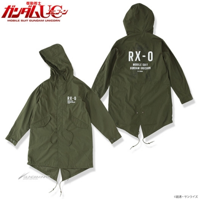 [Mobile Suit Gundam Unicorn Mods Coat] มาด้วยทรงเอมาตรฐาน ส่วนที่คลุมเป็นซิลลูเอทที่ทำให้ซ่อนรูปแม้ว่าข้างในคุณจะสวมใส่ผ้าที่หนา ส่วนล่างของโค้ทรอบสะโพกเป็นเชือกรูด อกด้านซ้ายมีงานพิมพ์ [RX-0] ด้วยสีขาวโดดเด่นบนพื้นสีกากี ด้านหลังตรงกลางโค้ดก็พิมพ์ [RX-0] เช่นกัน พร้อมกับงานพิมพ์ภาพของ Unicorn Gundam เป็นเงาสีดำ เป็นแบคกราวด์ โดยรวมแล้วเป็นMods Coat ที่ป๊อปไม่เบา