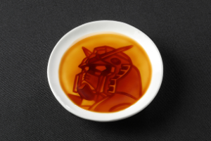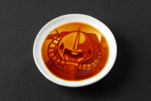 ถ้วยน้ำจิ้มที่สลักรูป Gundam และ Char’s Zaku ไว้บนพื้นด้านในของถ้วย จะเกิดเป็นรูปขึ้นมาเมื่อเทซอสหรือน้ำจิ้มต่างๆ ที่มีสีลงไป