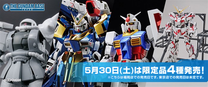 กันพลาลิมิเต็ดเฉพาะ THE GUNDAM BASE ทั้งสี่แบบ รวม PG Gundam [Titanium Finish] พร้อมวางจำหน่ายแล้ววันนี้เสาร์ที่ 30 พฤษภาคม ณ ศูนยจำหน่าย GUNPLA THE GUNDAM BASE FUKUOKA