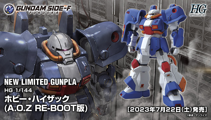HG Hobby Hi-Zack (A.O.Z. RE-BOOT Ver.) จะจำหน่ายผ่านการพรีเซลล์ตั้งแต่วันเสาร์ที่ 22 กรกฎาคม ที่ GUNDAM SIDE-F ราคา 3,080 เยน (รวมภาษี)