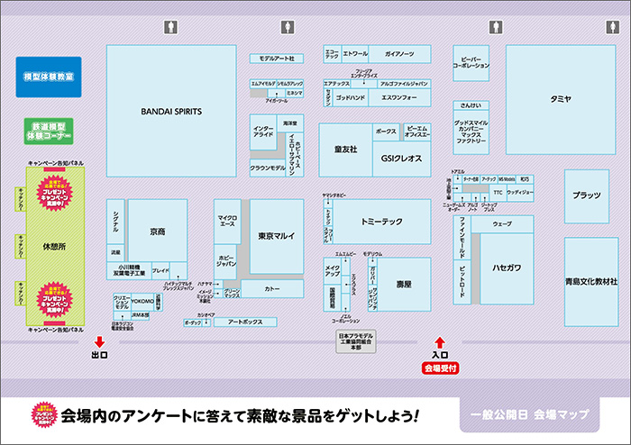 จะมีนิทรรศการนวัตกรรมที่จะได้สัมผัสกับความตื่นเต้นของงานอดิเรกต่างๆ ประกาศเกี่ยวกับสินค้าใหม่ที่น่าสนใจ แคมเปญของขวัญสำหรับผู้เข้าชม เวิร์คช็อปการประกอบชุดโมเดลพลาสติก การขับรถไฟจำลอง สินค้าที่ผลิตในญี่ปุ่นและต่างประเทศโดยบริษัทญี่ปุ่น เป็นสถานที่ที่สามารถดื่มด่ำไปกับความสุขของการสร้างแบบจำลองได้อย่างเต็มที่ ซึ่งอาจกล่าวได้ว่าเป็นต้นกำเนิดของจิตวิญญาณการผลิตของญี่ปุ่น ในขณะเดียวกันก็เพลิดเพลินไปกับเสน่ห์และความมีชีวิตชีวาของของจิ๋วที่สมจริง