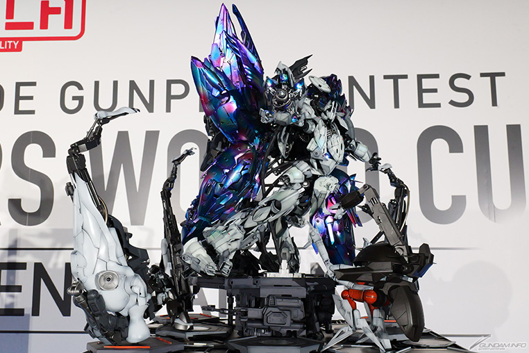 FAgreen (อันดับที่ 1 ในรุ่น Over 21): “ผมอายุ 22 ปี และใช้เวลาประมาณ 4 เดือนในการสร้างชิ้นงานนี้ ผมใช้ชิ้นส่วนจากกันพลาประมาณ 40 ถึง 50 ชิ้นในขณะที่ใช้ MG Turn X เป็นฐาน ผมตั้งเป้าที่จะขยายขนาดของมันเพื่อสร้างรูปลักษณ์ที่ดูมีชีวิตชีวา และทุ่มเทความพยายามเป็นพิเศษในการทาสี Moonlight Butterfly โดยใช้เส้นโค้งที่นุ่มนวล”