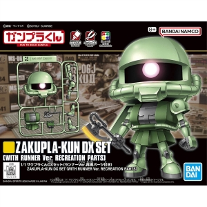 สามารถเลือกประกอบ ZAKUPLA-KUN ในเวอร์ชันปกติและเวอร์ชันรันเนอร์ได้ เพลิดเพลินกับการจัดแสดงชุดในรูปแบบต่างๆ ที่เห็นในซีรีส์ร่วมกับชุดโมเดลพลาสติก GUNPLA-KUN อื่นๆ (แยกจำหน่าย)