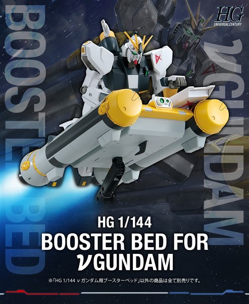 Booster Bed ที่ Amuro Ray ใช้ใน Mobile Suit Gundam: Char’s Counterattack จะวางจำหน่ายในรูปแบบ HG-scale kit ซิลลูเอทอันเป็นเอกลักษณ์ได้สร้างขึ้นมาใหม่และสามารถติดตั้งชุดคิท อาทิเช่น HG v Gundam ได้ (แยกจำหน่าย) บูสเตอร์ที่รวมอยู่นั้นสามารถต่อเข้ากับHGUC Type 89 Base Jabber ได้อีกด้วย มาพร้อมกับส่วนต่อ MS และสามารถจัดแสดงรูปร่างต่างๆโดยใช้ฐาน Action Bases